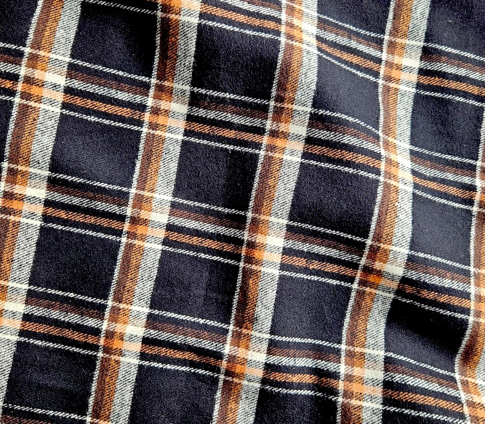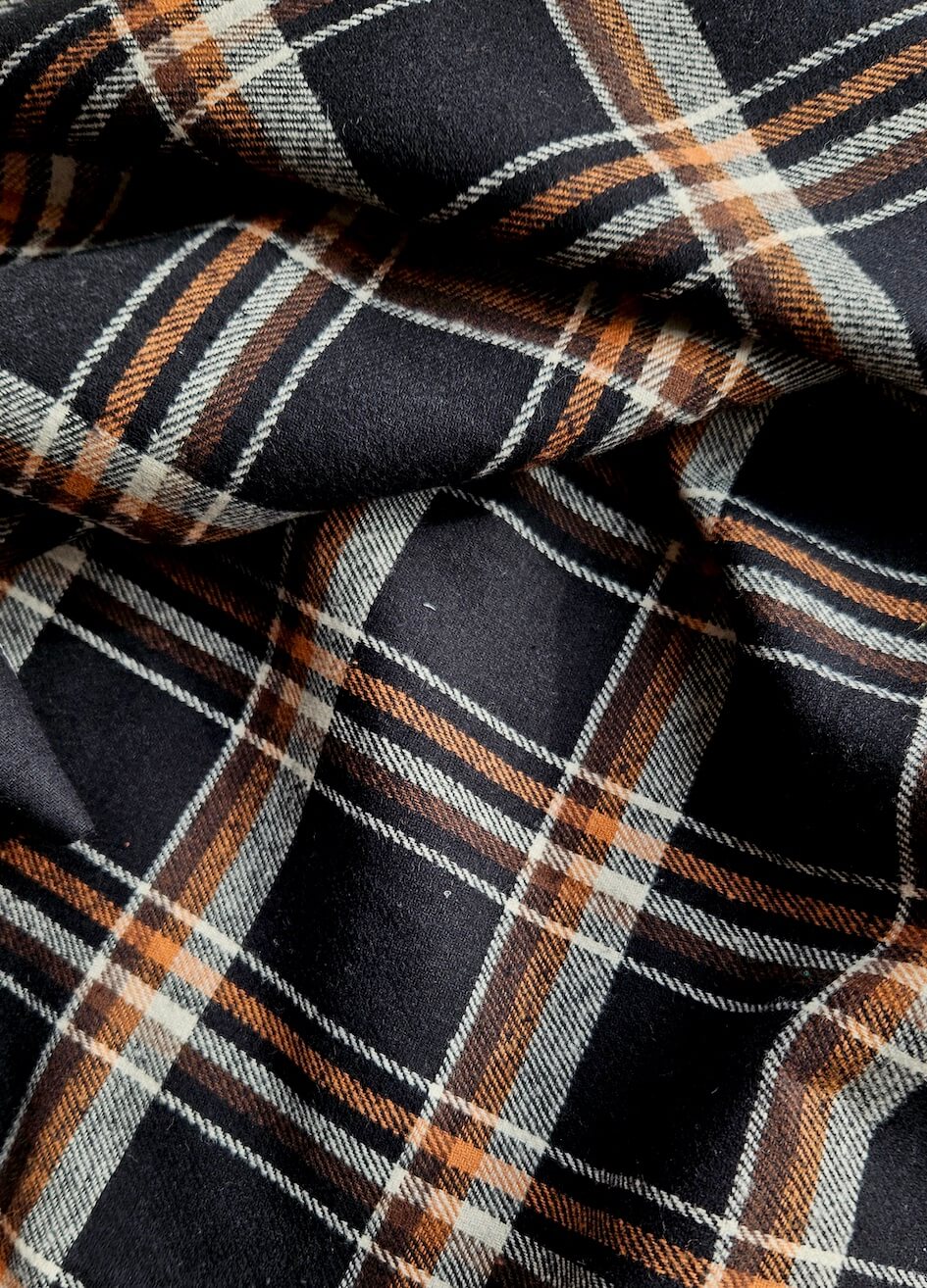 La flanelle de coton n’est pas un Tartan qui est traditionnellement en laine. Mais le jeu de ces carreaux est plus inspiré de ce type de textile intemporelle. Une base de noir, ultra chic, avec un entrelas de ligne crème et abricot, pour la pointe de chic et de chaleur qu’on adore. Un basique qui sort du lot !