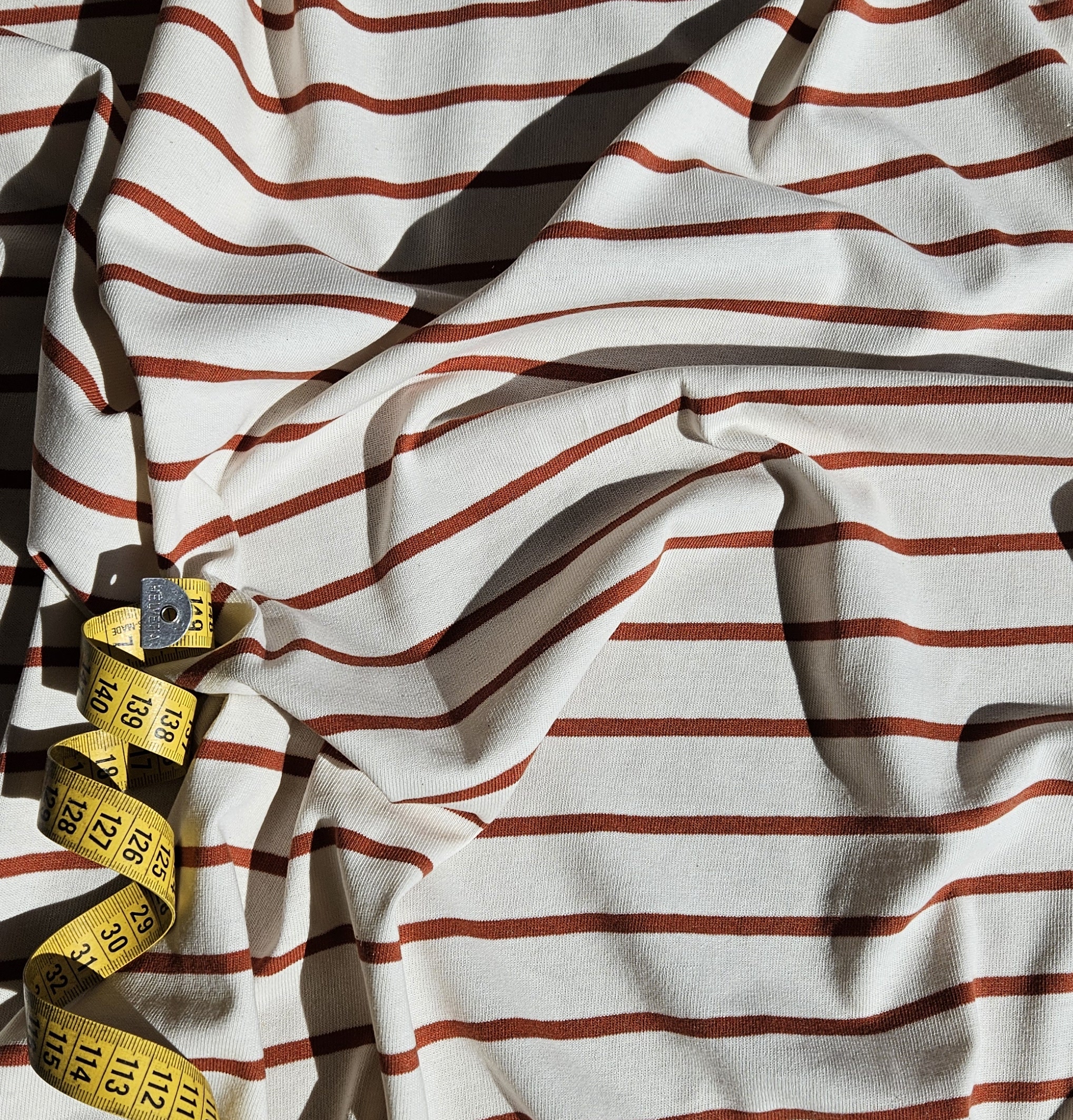 La marinière est un intemporelle à coudre et à recoudre pour toutes les occasions. Cette version est différente. tout d’abord parce que les lignes sont plus épaisses que dans les autres versions. Mais aussi parce que au niveau du code couleur, on sort vraiment du blanc bleu noir classique. La couleur naturelle du coton s’aligne parfaitement avec ce rouge brique qui est mis à l’honneur avec ces lignes plus épaisses.